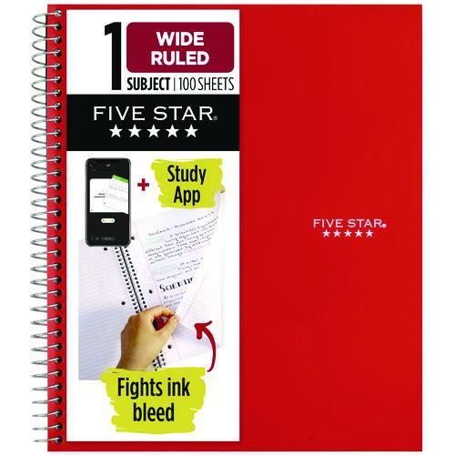 Five Star Wirebound Wide Rule 1-Subject Notebook - 100 Sheets - Wire Bound - Wide Ruled Front Ruling - 8" x 10 1/2" Sheet Size - Assorted Plastic Cover - 1 Each
