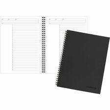 Mead Action Planner Business Notebook - Twin Wirebound - 9.50" Height x 7.5" Width x 0.6" Length - Black Cover - Pocket, Pen Loop, Perforated, Dual-sided Pocket, Bungee - Recycled - 1 Each