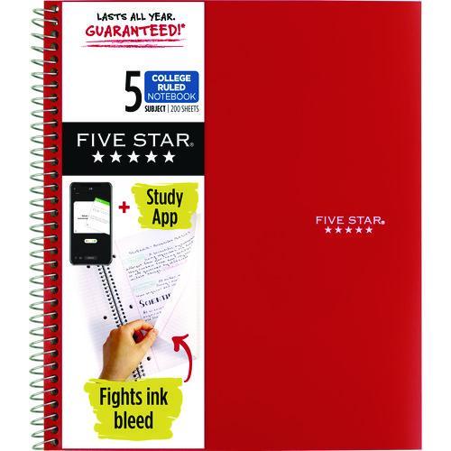 Mead Five-Star Wirebound 5-Subject Notebook - 200 Sheets - Wire Bound - 11" x 8 1/2" Sheet Size - White Paper - Assorted Cover - Pocket, Stiff-back, Perforated, Pocket Divider, Heavyweight, Subject, Spiral Lock - 1 Each