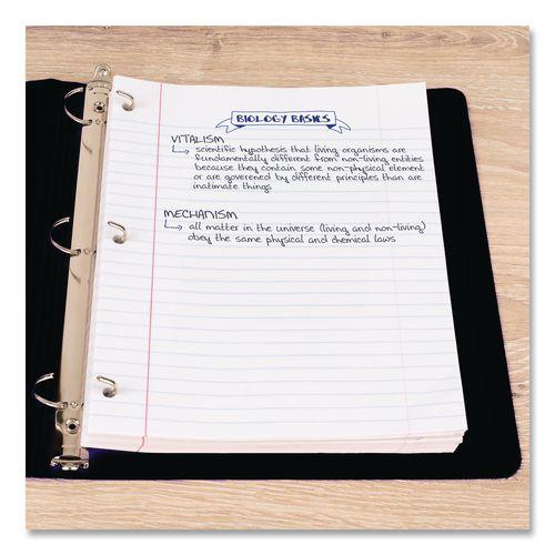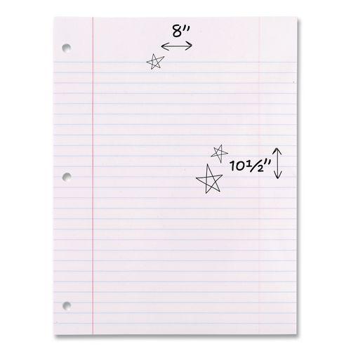 White filler paper is three-hole punched and ready to insert into standard ring binders. Each 15 lb. sheet is legal/wide-ruled with 11/32" line spacings and a red margin line on the left. Heavyweight stock makes this paper extra durable so it will not rip out of binders.
