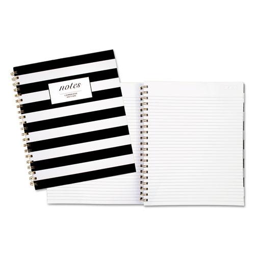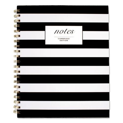 Cambridge Hardcover Wirebound Notebook - 160 Pages - Twin Wirebound - Both Side Ruling Surface - Ruled - 11" x 8 7/8" - Black & White Stripe Cover - Hard Cover, Dual Sided - 1 Each