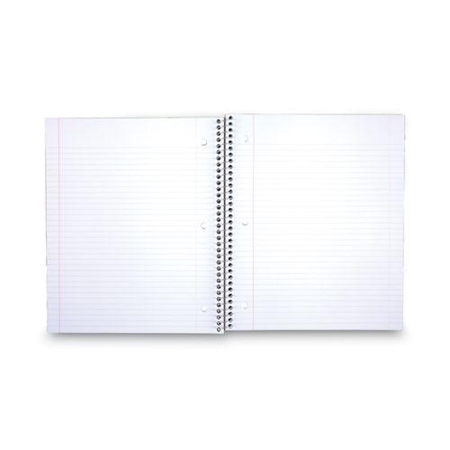 One-subject notebook features durable, water-resistant covers to keep your notes protected all year long. College-ruled, high-quality paper resists ink bleed to help keep your writing legible. Neat sheet pages are perforated for clean, consistent removal. Spiral lock wire prevents the coil from snagging onto your clothing or backpack. Storage pockets keep your loose sheets organized and are reinforced to prevent tearing.