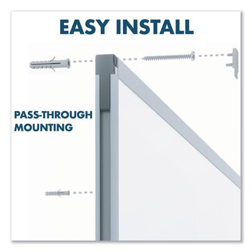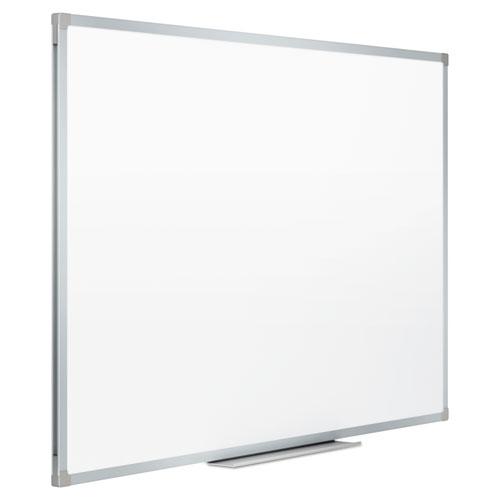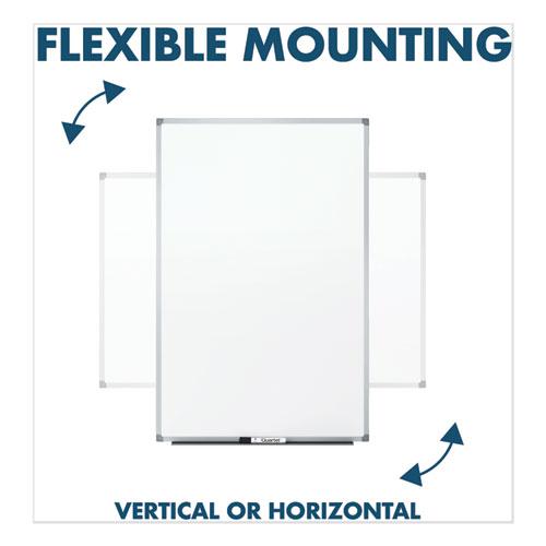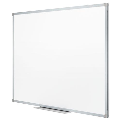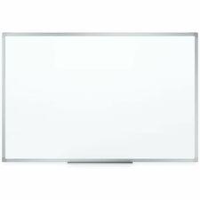 Basic dry-erase board provides a smooth and durable whiteboard writing surface that is great for quick note-taking. Hang in cubicle or other low-traffic environment and clean after each use for best performance. Design features a melamine surface and sleek, silver aluminum frame. Marker tray is included along with mounting hardware that allows board to hang in either a vertical or horizontal orientation.