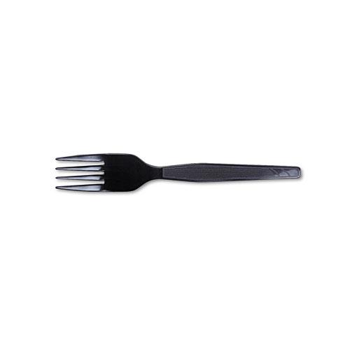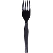 Plastic forks with an elegant black color are ideal for office parties, luncheons and breakroom use. Use with cold or hot foods. Utensils are made of medium-weight polystyrene for rigidity and flexibility as well as shatter-resistant and durable. They are conveniently packed in Grab 'N Go boxes. Each fork measures 6-1/8".