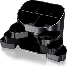Officemate Double Supply Desktop Organizer - 11 Compartment(s) - 4.5" Height x 5" Width x 3.8" Depth - Desktop - Non-skid Base - Black - Plastic - 1 Each