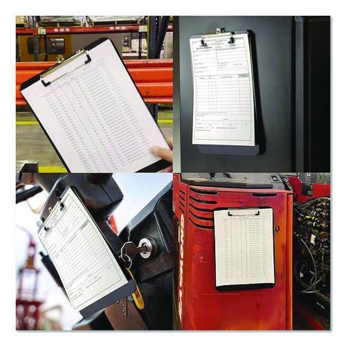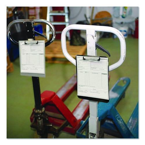 Magnetic Clipboard features three heavy-duty magnets on the back to mount on forklifts, pallet trucks, workstations, warehouse racking or on any metal surface. Solid, plastic construction provides durability for long-lasting use. Low-profile, metal clip offers excellent holding power for letter-size and A4-size paper. Built-in, retractable, key hang hole keeps your keys nearby and accessible.