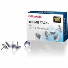 Officemate Steel Thumb Tacks - 0.50" Head - Silver - 100 / Box
