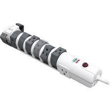 Eight-outlet surge protector offers six 180-degree rotating outlets, two fixed outlets and 2160 Joules of protection. Design also features 15 amp overload resettable circuit with indicator light and telephone/fax/modem protection, RJ-11. Surge protector includes 6' cord, and phone and coax cables. cUL approved.