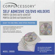 Self-adhesive CD/DVD holders feature a durable polypropylene material to protect CDs/DVDs from dust and scratches. Holders easily adhere to binders, file folders, report covers and books.