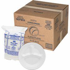 Dart Concorde 10-1/4" Nonlaminated Foam Compartment Plates - 10.3" Diameter - White - Foam Body - 125/Bag - 4 / Carton
