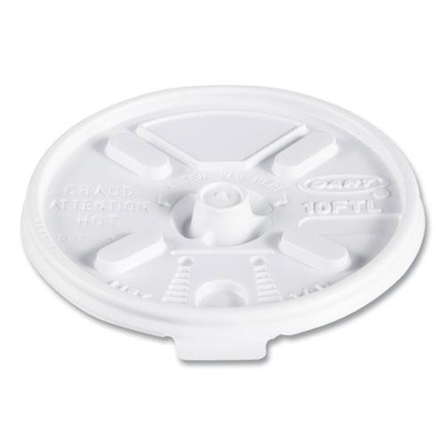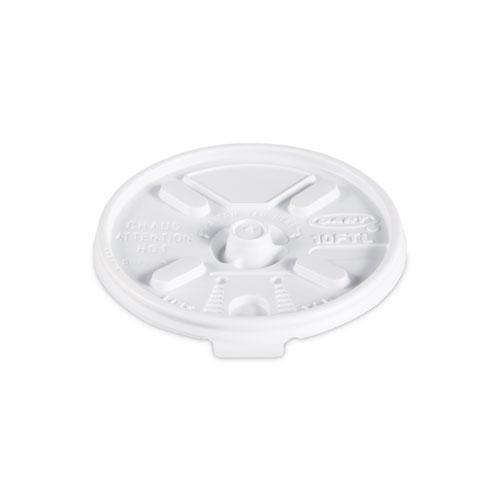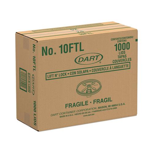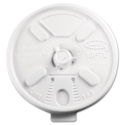 Lift-n-lock lid with fold tab is designed for use with foam cups. Closing tab helps avoid spills. Plastic lid is great for the breakroom and carrying liquids to your desk. It is great for use with coffee, soft drinks, shakes, juice, tea or water. Compatible cups include 10J10, 10KY10 and 10X10.