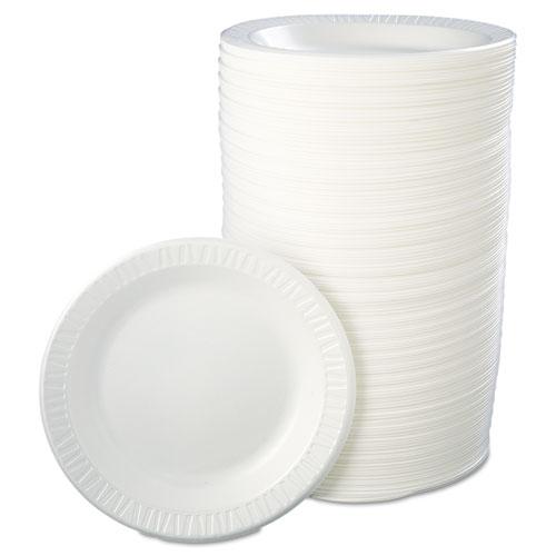 Dart Quiet Classic 10-1/4" Laminated Foam Plates - Serving - 10.3" Diameter - White - Glossy - Foam, Plastic Body - 125 / Bag - 4 / Carton