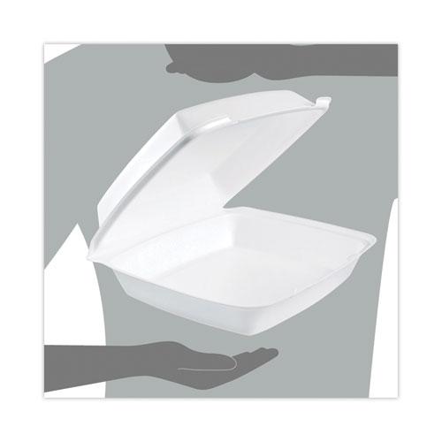 Classic white hinged-lid containers you can rely on. Whether you're sending leftovers home with loved ones or serving the best takeout in town, these containers have your back. Don't worry about hard to handle containers, the insulated foam keeps hands and food at the right temperature. Enjoy in any situation, the perforated hinge allows for a convenient dining option when on the go.