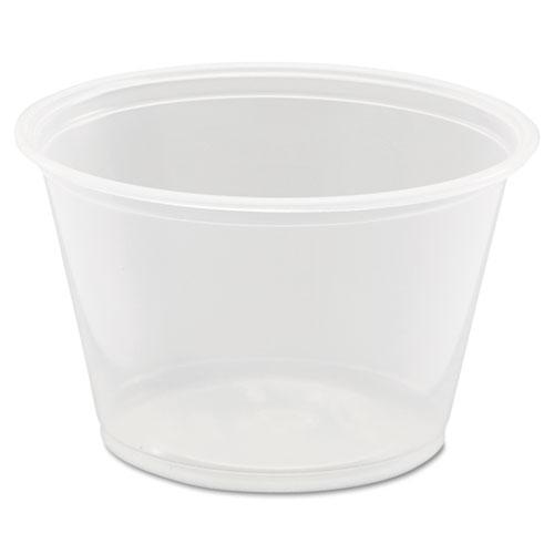 Conex Complements Portion Containers provide the perfect portion for any purpose. Durable, crack-resistant polypropylene allows diverse dining and carryout applications in today's foodservice market. Portion containers are perfect for anything from small hot or cold side dishes to salad dressing and whipped butter. Combine with Solo 4 oz. PET Plastic Souffle Cup Lids or 3.25 oz. to 5.5 oz. Plastic Souffle Cup Lids (none included) to easily transport side sauces such as ranch dressing, marinara, salsa and more.