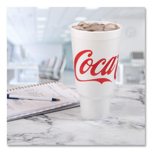 The classic Coca-Cola logo makes this cup perfect for serving an ice cold Coke™! No matter what you're pouring, these cups help maintain beverage temperature. Serve beverages without the fear of watered-down colas or not-meant-to-be-cold coffees! With these, your customers can comfortably take sodas, slushies or smoothies on-the-go. Seamless and non-absorbent, beverages won't leak or soak through. These dual-use cups save space and time, so they're ideal for food delivery, carryout, drive-throughs, cafeterias and hospitals. A wide variety of compatible lids suited to your needs are sold separately.
