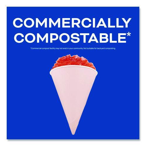 Quench your thirst in these easy-to-hold 4.25 paper cone cups! Whether you're serving snow cones, popcorn, or cool drinks these versatile cups streamline your inventory. Offer a mess-free experience thanks to the leak-resistant lining, making them perfect for water coolers in breakrooms, sporting events or fitness centers. The rolled rim adds extra strength for a comfortable sip every time. Plus, the cone shape prevents setting the cup down, keeping common areas tidy. Ideal for food trucks, concession stands or offices, these cups feature an easy-fill design to boost efficiency. With multiple packaging options, including built-in dispenser boxes, you can eliminate extra costs. Show your commitment to sustainability with ProPlanet™ Solo® Compostable* Paper Cone Cups.