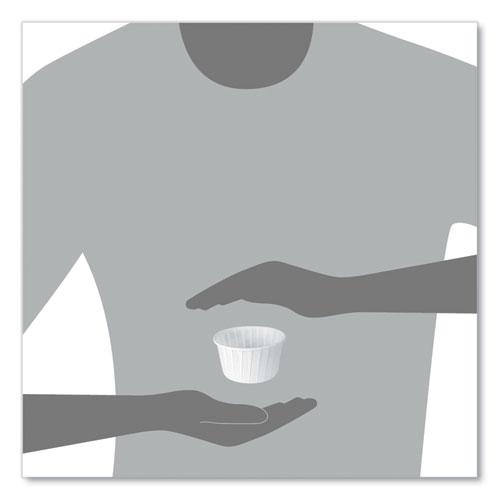 Designed for easy dipping! This soufflé cup makes it easy to serve condiments like ketchup, mustard, BBQ sauce and more! Moisture resistance ensures these cups hold up no matter what you're dipping. They're perfect for food trucks, cafeterias, carry out and self-serve counters. They're also a great size to hold individual doses of medicine distributed in hospitals, nursing homes and other medical facilities.