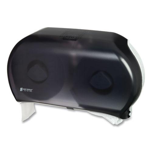 San Jamar Jumbo Bath Tissue Dispenser - Roll Dispenser - 2 x Roll - 9" Roll Diameter - 12" Height x 19" Width x 5.3" Depth - Plastic - Pearl Black - Impact Resistant, Break Resistant, Compact, Lockable, Wall Mountable - 1 Each