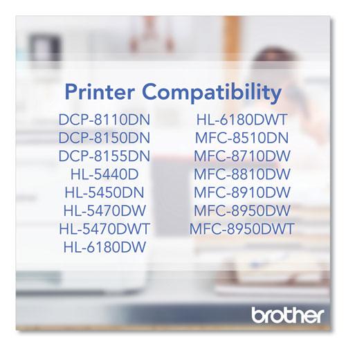 High-yield toner cartridges are designed for use with Brother DCP-8110DN, DCP-8150DN, DCP-8155DN, HL-5440D, HL-5450DN, HL-5470DW, HL-5470DWT, HL-6180DW, HL-6180DWT, MFC-8510DN, MFC-8710DW, MFC-8810DW, MFC-8910DW, MFC-8950DW and MFC-8950DWT. All genuine Brother printer supplies are designed as part of an entire printing system to provide a superior degree of quality. Genuine Brother toner is delicately balanced to provide even flow and toner distribution. Each cartridge yields approximately 8,000 pages.