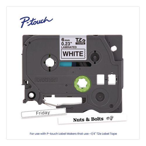 P-touch TZe Laminated Tape Cartridge - 1/4" Width - Rectangle - White - Water Resistant - Grease Resistant, Grime Resistant, Temperature Resistant - 1 Each