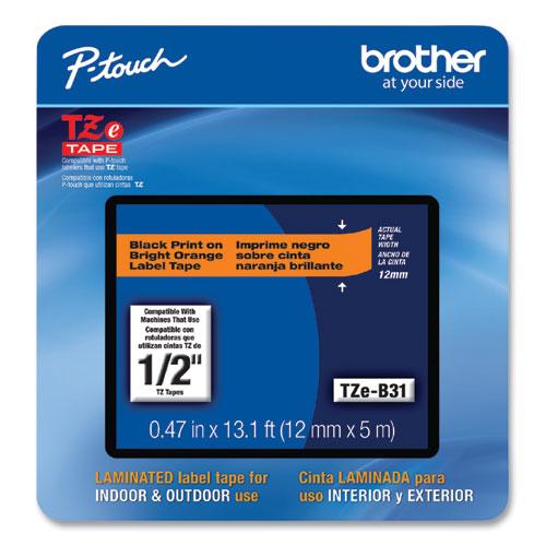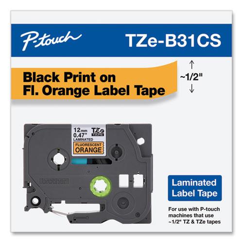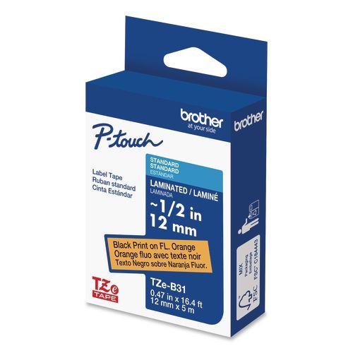 Brother TZe-B31CS, 0.47" x 16.4', Black on Fluorescent Orange Laminated Label Tape - Black on Fluorescent Orange - 1 Each