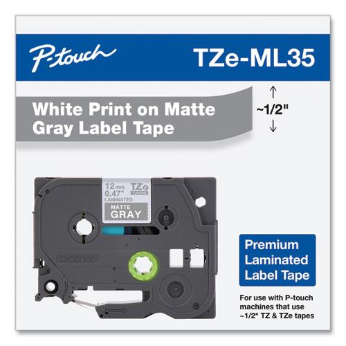 Brother P-touch TZe-ML35 White Print on Premium Matte Gray Laminated Tape 12mm (0.47") wide x 8m (26.2') long - Brother P-touch TZe-ML35 White Print on Premium Matte Gray Laminated Tape 12mm (0.47") wide x 8m (26.2') long