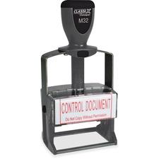 Heavy-duty, self-inking stamp is made from rigid steel and features an integrated, re-inkable stamp pad. Re-inking is simple so you don't have to worry about messy, ink-covered hands. Use ClassiX Refill Ink only to re-ink your stamp pad. Heavy-duty frame and precision components deliver smooth operation and years of use. Custom message stamp is available in red, black, blue, green and purple. Impression size is 1-5/16" x 2-1/4". Comfortable handle makes it easy to use.
