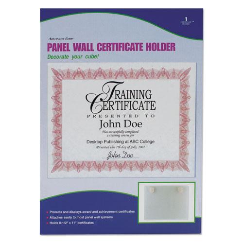 Certificate holder features a clear construction to completely showcase honors and awards on fabric-covered panel wall furniture. Included adhesive-backed clip allows simple display in an optimal location. Plus, its versatile design allows you to display awards either vertically or horizontally. Certificate holder is designed to hold letter-size inserts.