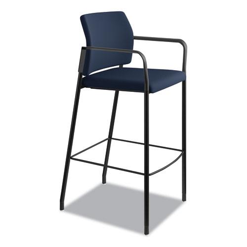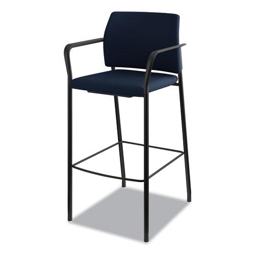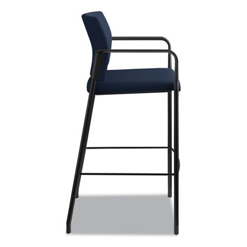 HON Accommodate Sitting Stool - Navy Fabric Back - Textured Black Steel Frame - Navy - Polyester Fabric - Armrest