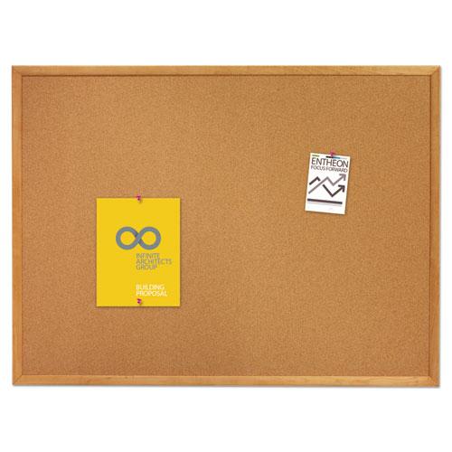 Corkboard with oak frame features long-lasting, thick, resilient cork. Ideal for breakrooms and home offices. Dense, nonporous cork holds pushpins tightly. Corkboard has a dense, fibrous fiberboard backing, primed and sealed to reduce moisture absorption and resist warping. Mounting system makes hanging simple and allows horizontal or vertical mounting. Frame face is 1-1/8".