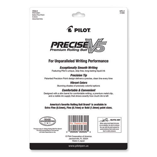 Enjoy unparalleled performance with Pilot® Precise® Roller Ball Stick Pens and delight in the details with rich, vibrant ink. From your first word to your last, their unique liquid ink formula maintains consistent flowing strokes for precise, clean lines, while precision point technology ensures incredibly smooth, skip-free writing. Each pen's barrel and cap are color-matched to your chosen ink color, and the easy-to-hold air-pocket grip is transparent, allowing you to keep an eye on your remaining ink supply.
