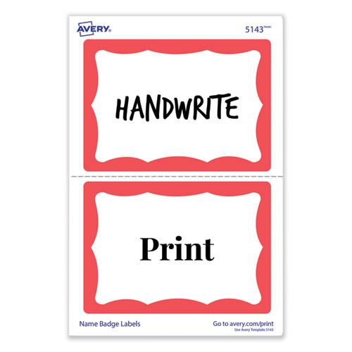 Avery® Border Print or Write Name Tags - 2 21/64" Width x 3 3/8" Length - Removable Adhesive - Rectangle - Inkjet, Laser - Matte - White, Red - Red Border - Paper - 2 / Sheet - 50 Total Sheets - 100 Total Label(s) - 100 / Pack