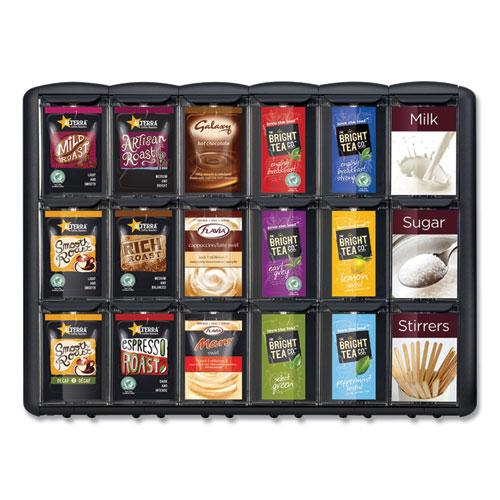 Showcase a wide variety of FLAVIA coffees, teas and specialty drinks. User friendly modular design efficiently utilizes break room counter space. Compartment drawers are easy to fill with additional product and the included dividers keep everything neatly in place. FLAVIA Fresh Packs sold separately.